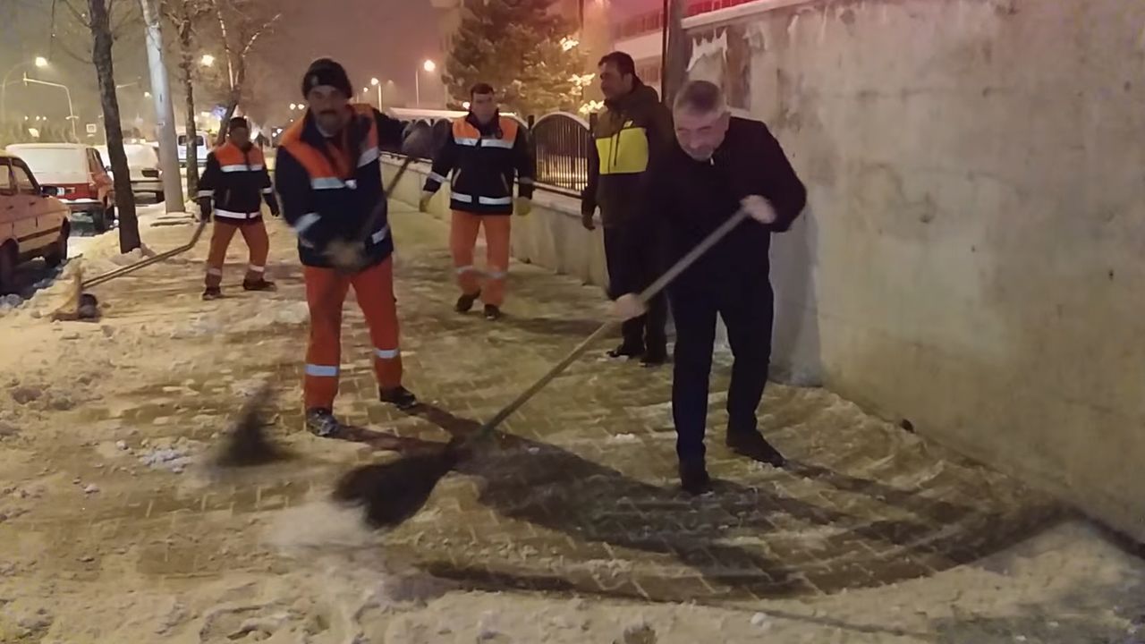 Yılın ilk saatleri ile birlikte şehir içerisine yağan karın yolları kapatmaya başlaması üzerine harekete geçen Belediye ekipleri gece geç saatlerden itibaren çalışmalarını hızlandırdı.