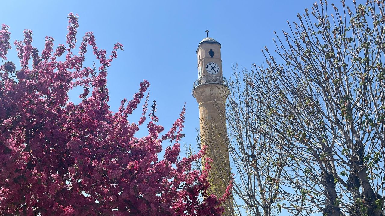 Şehrin simgelerinden biri olan Saat Kulesi çevresi, çiçek açan ağaçlar ve yeşeren alanlarla birlikte kartpostallık görüntülere sahne oldu.