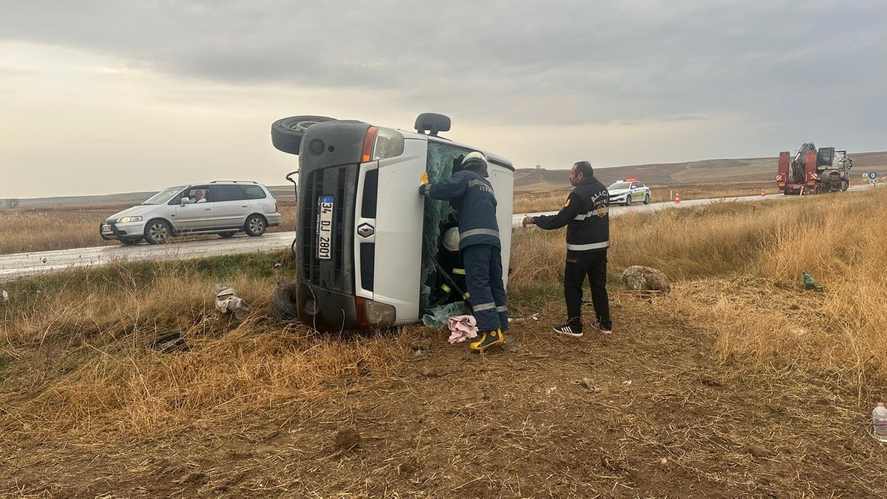 Çorum'un Alaca ilçesinde hafif ticari aracın devrilmesi sonucu 3 kişi yaralandı.