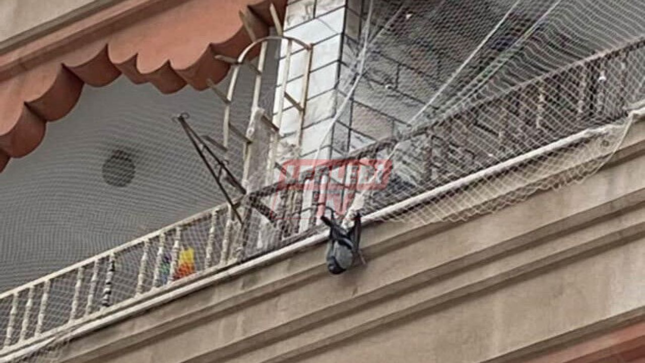 İtfaiye ekipleri binadaki filelere asılı kalan kuşu kurtarmak için çalışma başlatırken, polis ekipleri kısa süreli yolu trafiğe kapattı.