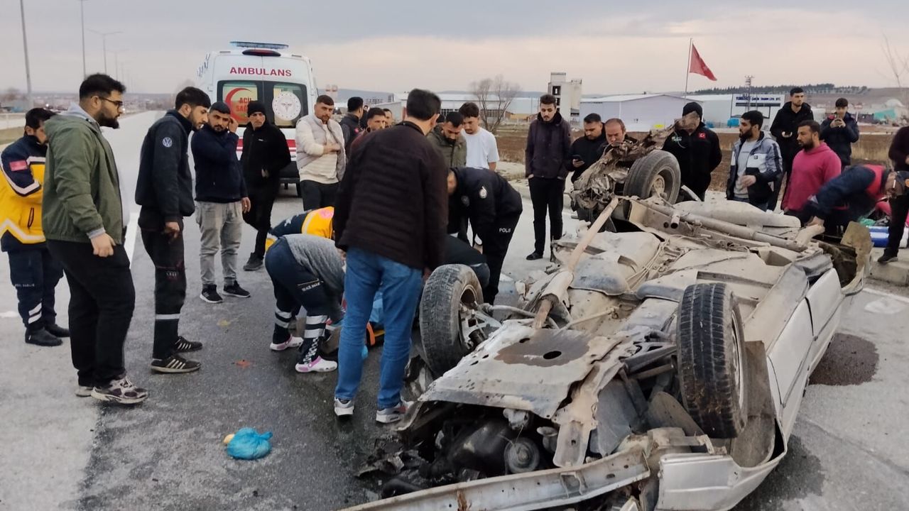 Takla atarak ters dönen araçta sürücü O.A. (63) ile yolcular B.A. (16) ve R.A. (77) yaralandı.