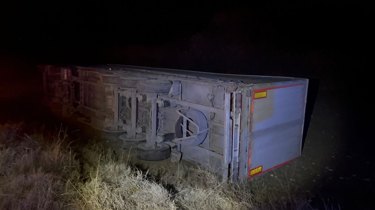 Çorum'un Sungurlu ilçesinde devrilen tırın sürücüsü yaralandı.