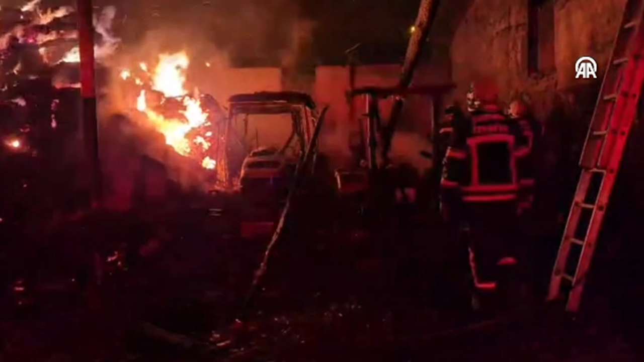 Çorum'da bir evin samanlık bölümünde çıkan yangında 2 traktör ve 2 bin saman balyası zarar gördü.