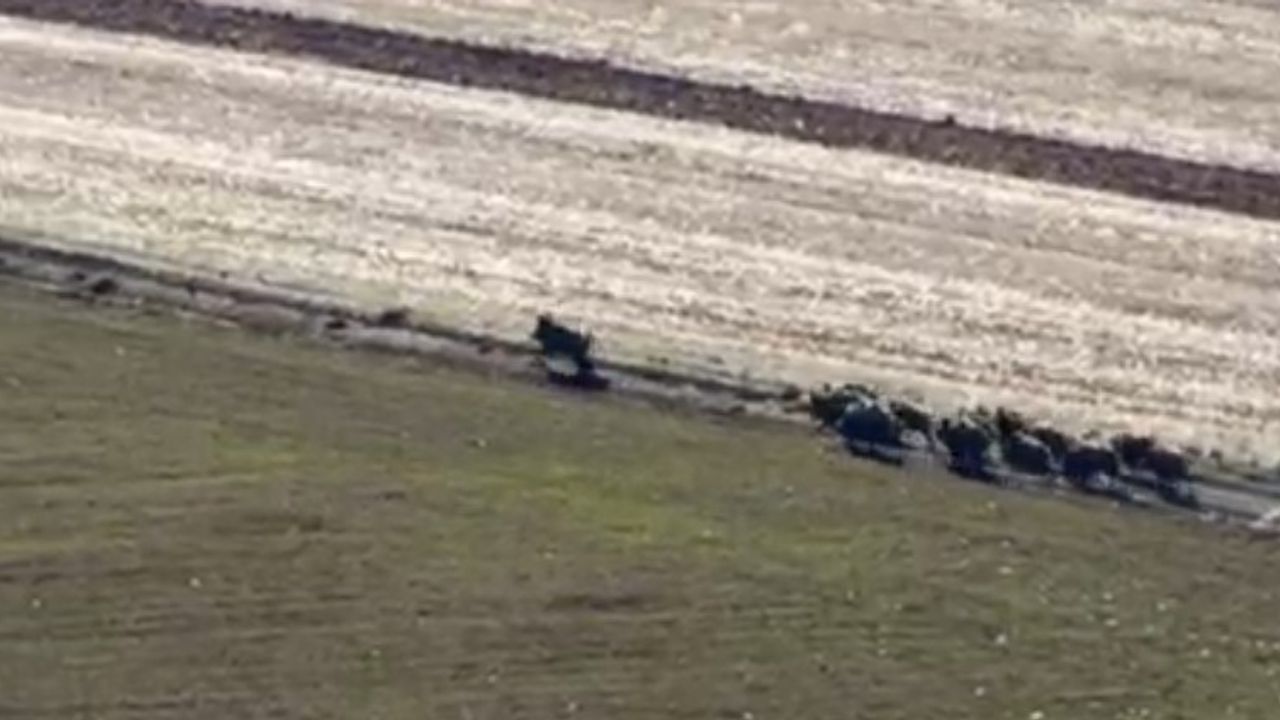 Ekili tarlaları talan eden domuz sürüsünü cep telefonu kamerasıyla kaydeden çiftçiler, domuzların tarlalara verdiği zarara an be an şahit oldu.
