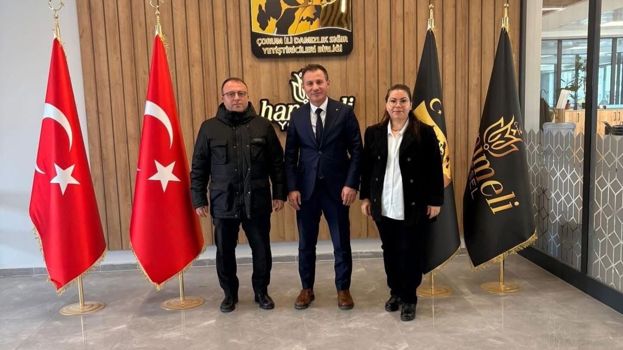 Çorum Vali Yardımcısı Cengiz Nayman ve Çorum İl Kültür ve Turizm Müdürü Sümeyra Şengül, Damızlık Sığır Yetiştiricileri Birliği Yönetim Kurulu Başkanı Yılmaz Kaya’yı ziyaret etti.