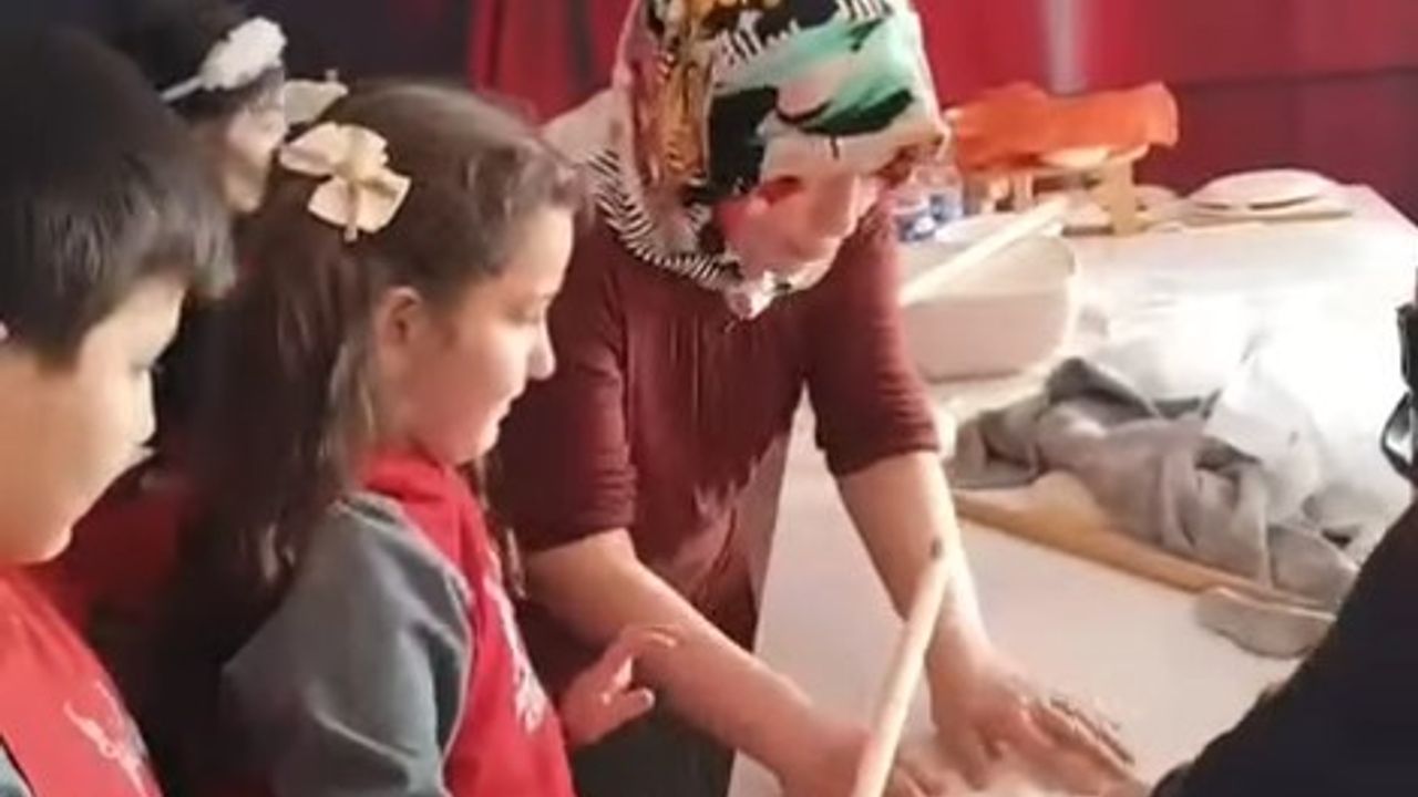 Öğrenci, öğretmen ve velilerle düzenlenen etkinlikte öğrenciler hamur yoğurdu, hamur açtı ve çörek pişirdi.