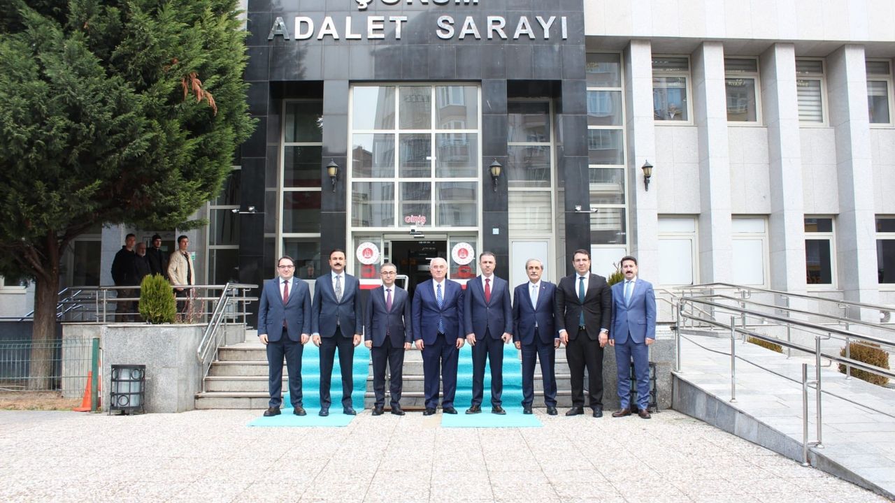 Çorum Cumhuriyet Başsavcısı Ahmet Bektaş’ı adliyede ziyaret eden Türkiye Kamu Başdenetçisi Mehmet Akarca, Yargıtay Onursal Cumhuriyet Başsavcısı Bekir Şahin ve beraberlerindeki heyet, istişarelerde bulundu.