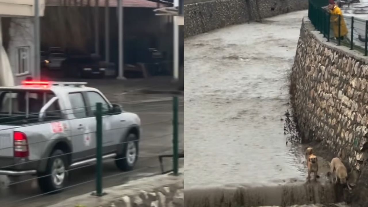 Sel sularına kapılma tehlikesi yaşayan köpeklerin kurtarıldığını gören vatandaşlar, Belediye ekiplerine teşekkür etti.
